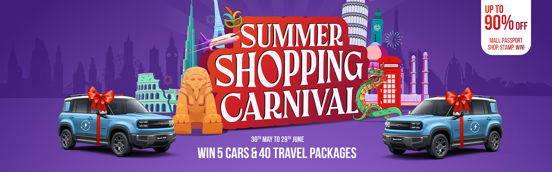 Grab your Mall Passport, collect stamps by visiting different malls, and increase your chances to win one of 40 exciting travel packages.